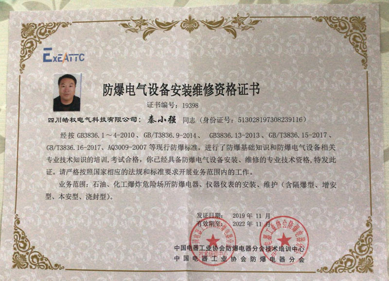 防爆電器檢修與測(cè)試現(xiàn)場(chǎng)